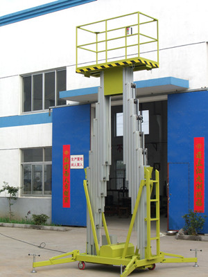 雙桅柱鋁合金升降平臺 | GTWY6-200S | 6 | 7.7 | 200 | 1.36*0.6 | AC220V/50HZ | 1.5 | 320 | 1.48*0.9*2.06 |