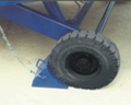 防止車輛傾覆的高度可調(diào)支撐座。支撐于車輛尾部大梁上,防止叉車進(jìn)入車輛時(shí),重力集中于車輛尾部發(fā)生車輛傾覆。能夠充分保障作業(yè)安全。 | 移動(dòng)式液壓登車橋坡面采用特制的高強(qiáng)度齒形鋼格板,具有卓越的防滑性能,使叉車有更好的爬坡能力和操控性。即使雨雪天氣,仍能保障正常作業(yè)。 | 隨機(jī)配置的剎車墊,能有效防止叉車在登車橋上行走時(shí),登車橋發(fā)生溜車及移動(dòng),以保障作業(yè)安全。 | 采用手動(dòng)液壓泵作為動(dòng)力,不需外接電源即可輕松實(shí)現(xiàn)登車橋的高度調(diào)節(jié)。同時(shí)可根據(jù)客戶需要,選配直流電源作起升動(dòng)力。 | 可調(diào)節(jié)長度的索鏈用于鉤住車輛,使登車橋與卡車發(fā)生移位時(shí),登車橋與卡車不會(huì)脫離,保障作業(yè)安全。 |